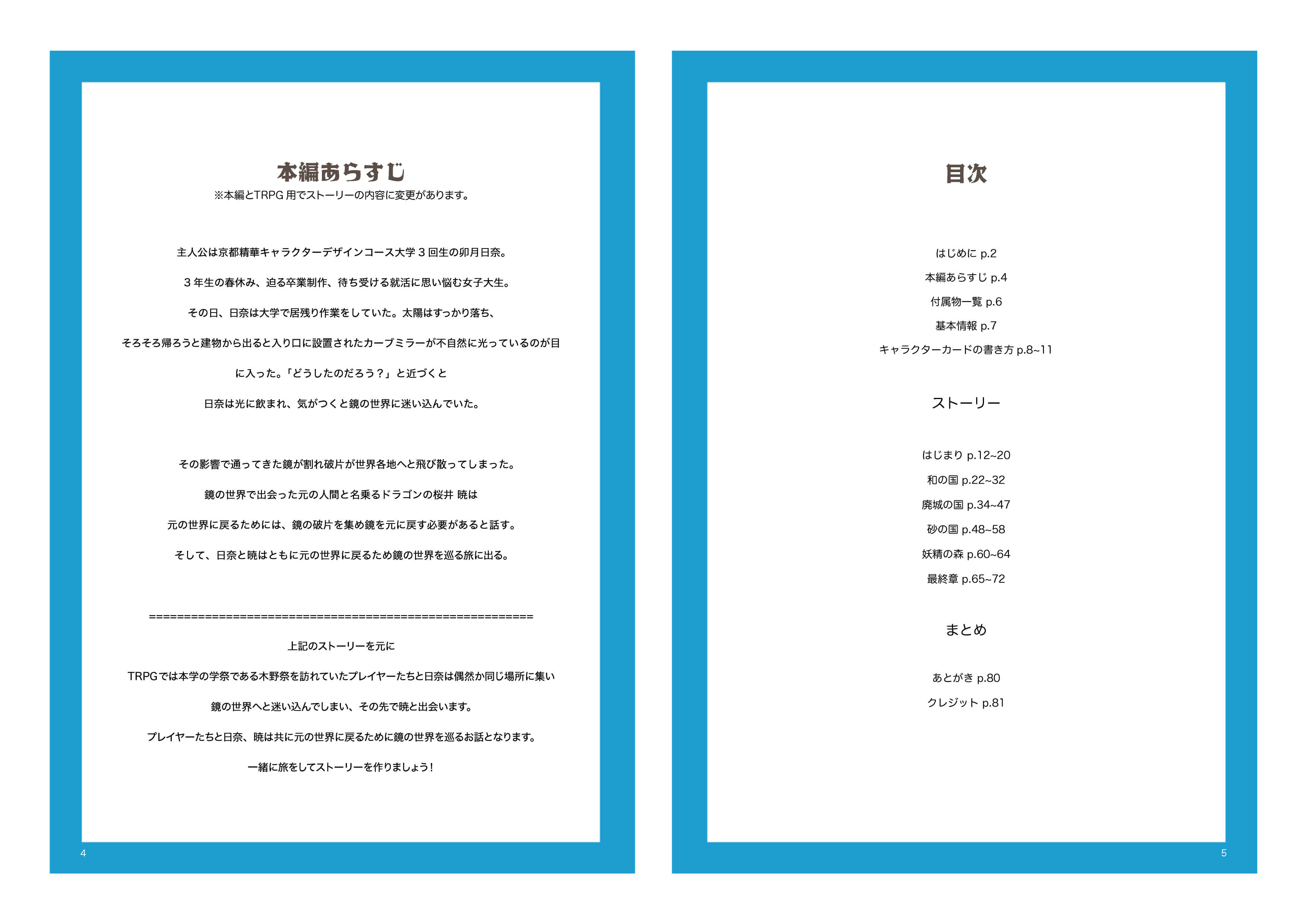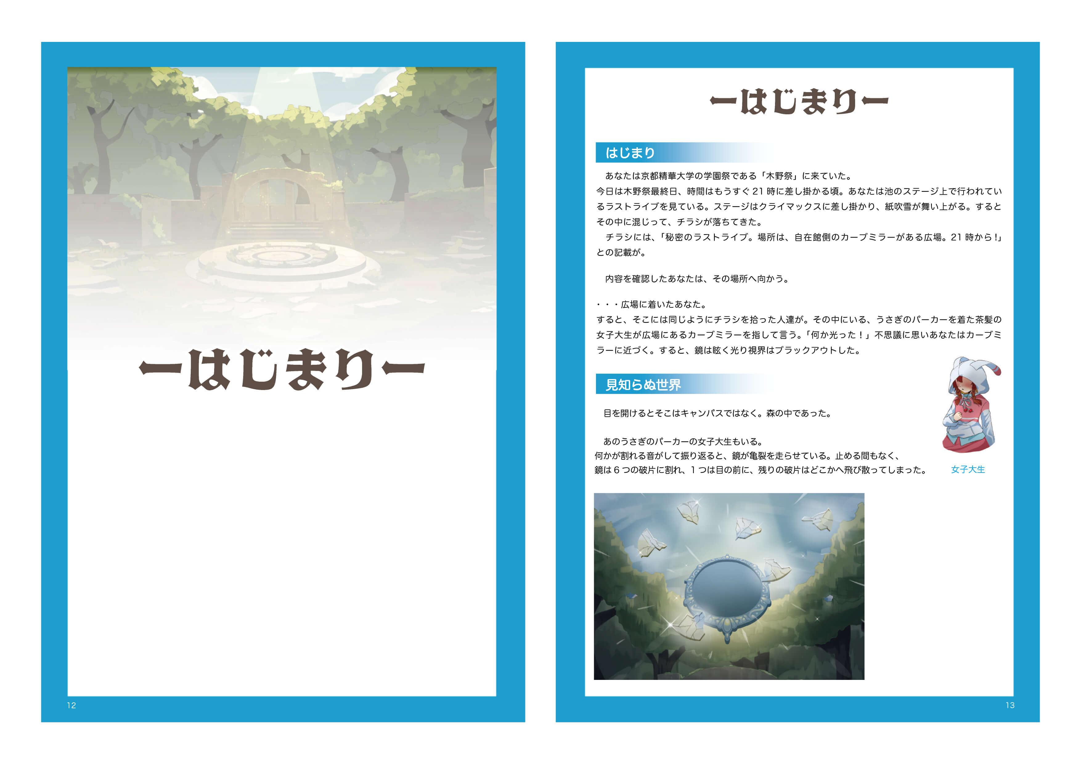 京都精華大学に通う主人公が、学内の鏡に触れたことで鏡の世界に迷い込む。