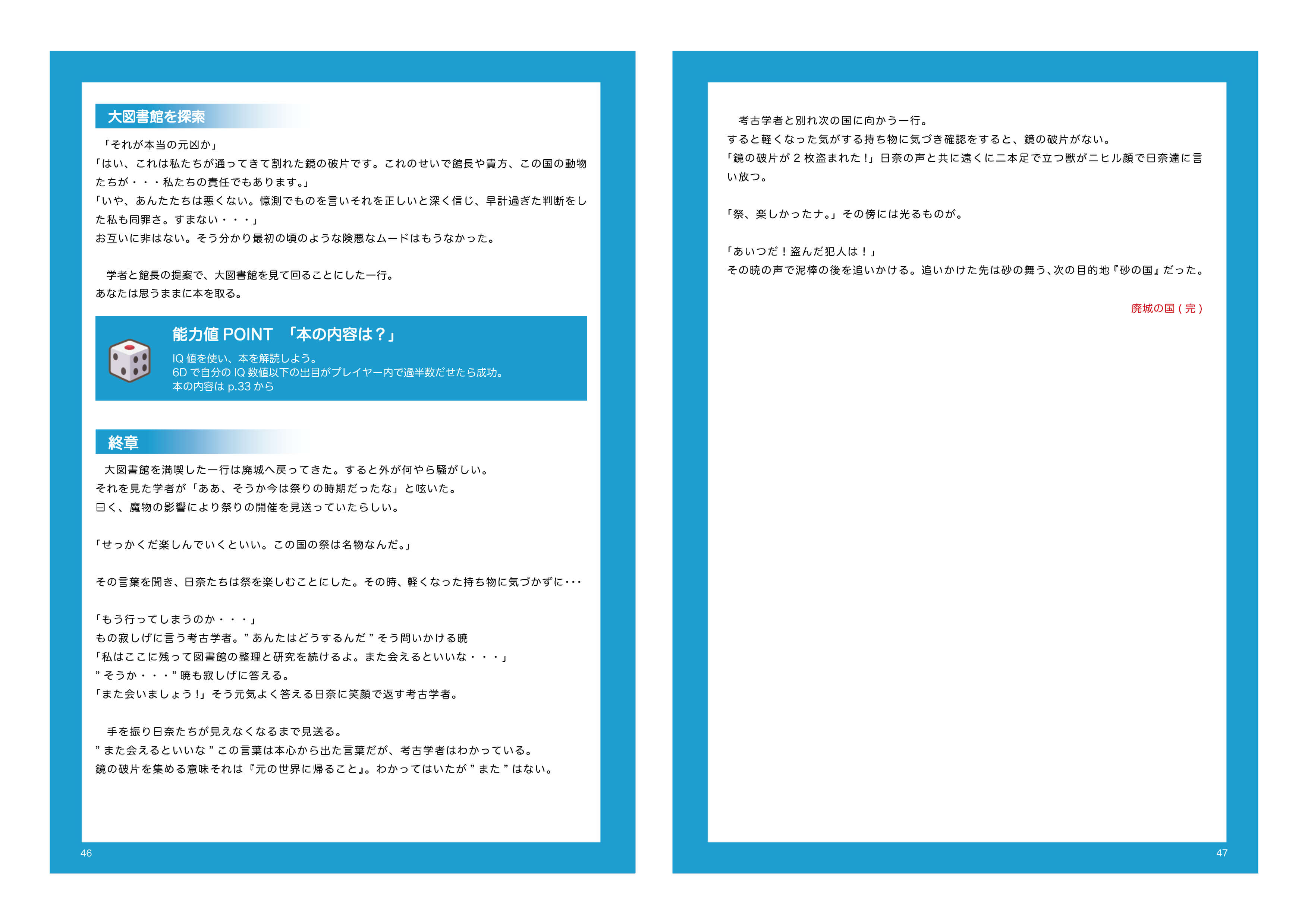 旅の目的:鏡の世界で出会った相棒と一緒に、元の世界に帰るため鏡の破片を6つ集めるストーリー。