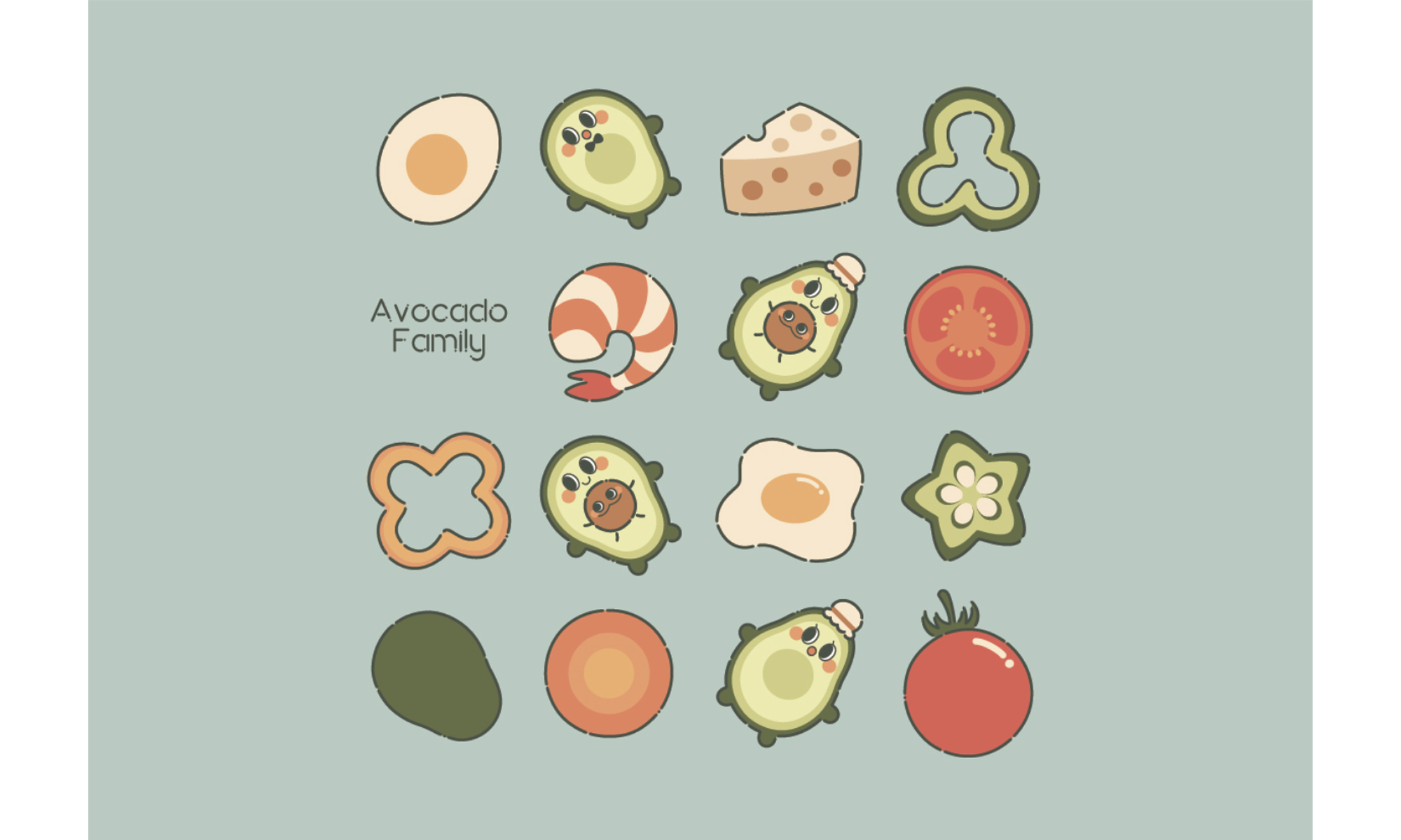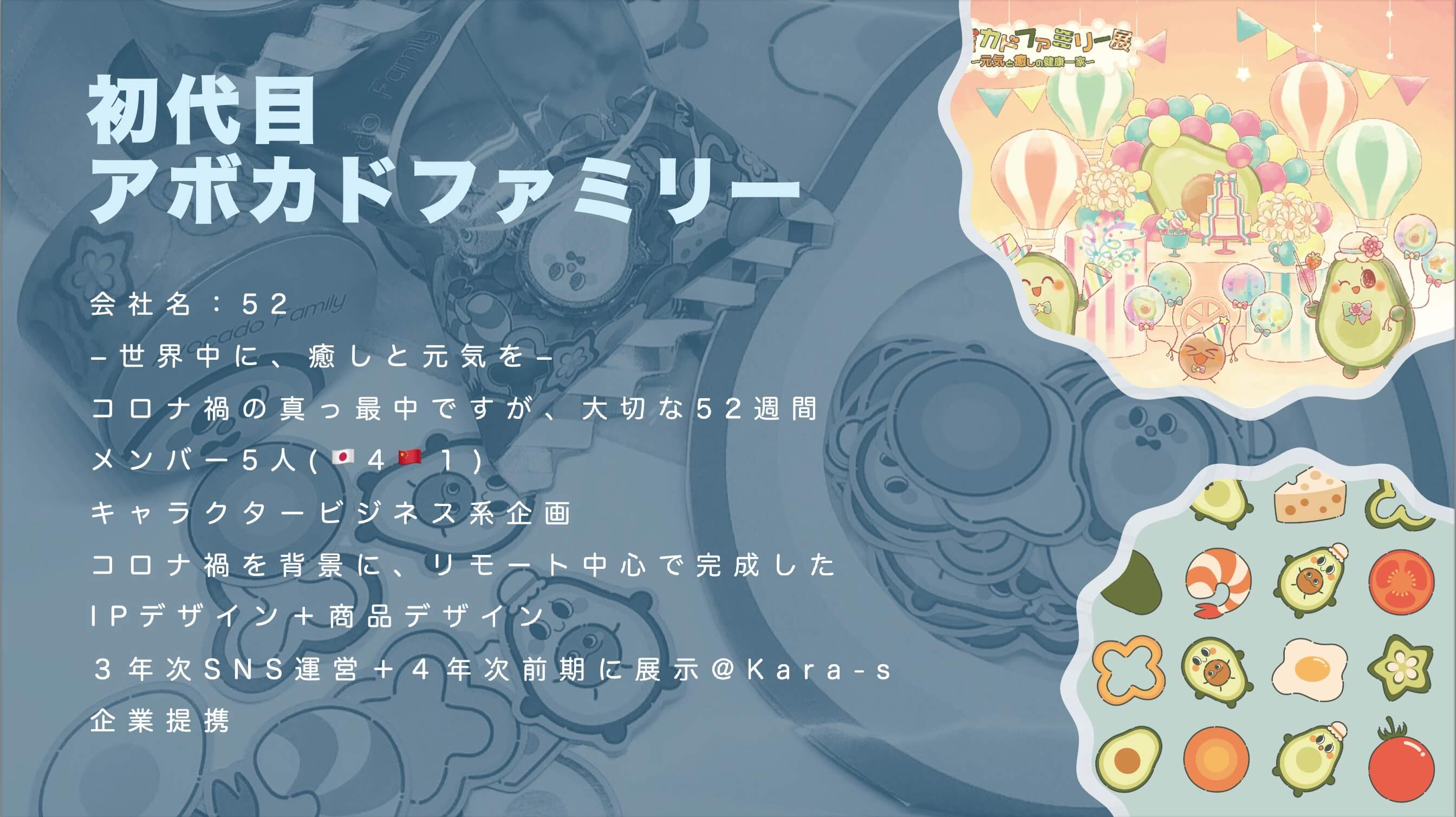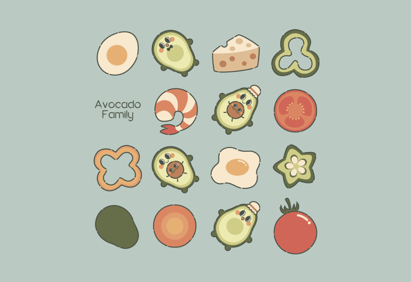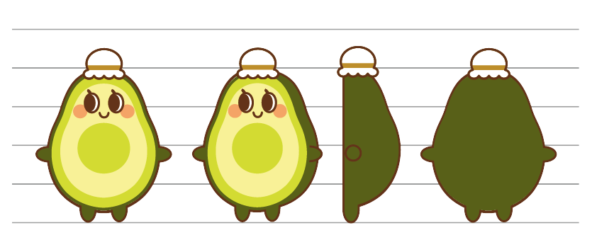 今学期は「アボカドファミリー」の設定と3種類のスタイルガイド、そしてスタンプとショートムービーを無事完成しました。